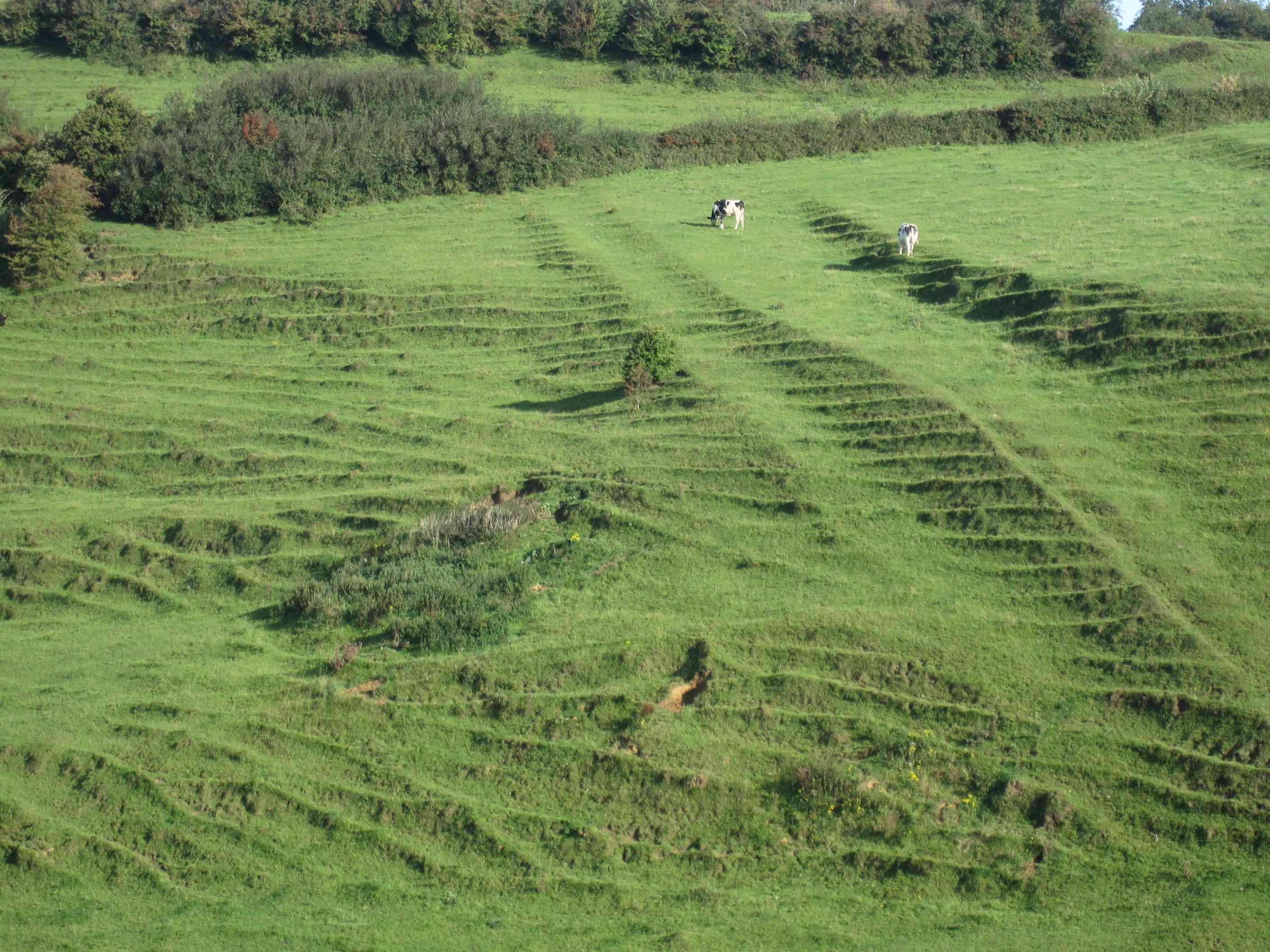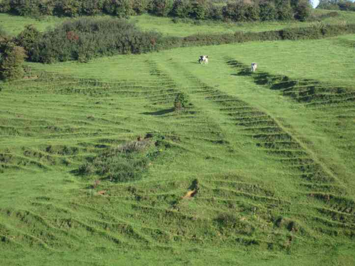The last day is 17 miles, but I have been feeling really good on this walk so far, not popping Ibuprofin and groaning, so that didn’t seem daunting. And it’s a really nice walk, even if it does mean leaving the wilds. After a lot of solitary farm-walking, the path teases some big drama with Dyrham Park, a massive dear park enclosure now in national hands, linked to Dyrham House. It’s a tease, really, because the path skirts the tall stone fence so that you only get glimpses inside. But you do get a prime example of something that’s been present all along the trail: carved out tiers on hillsides that indicate ancient agriculture.