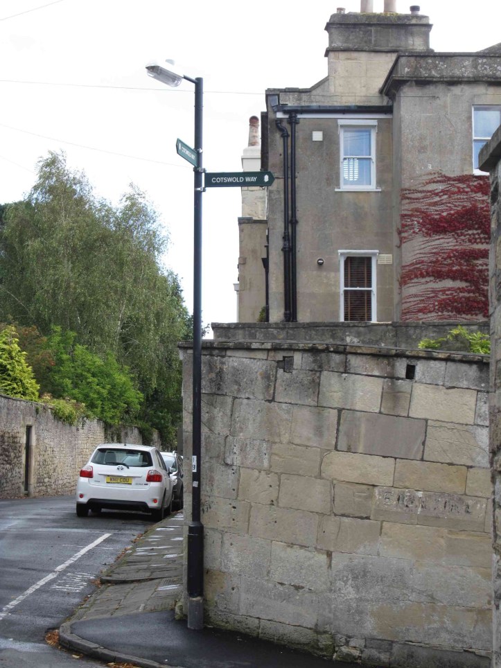 Here’s the story at Cold Ashton (named for the winds that sweep up the hills, by which standard half the places I’ve been through should be prefixed Cold) in three images. Image one: the closed church with a sign on the gate warning that it is protected by some kind of security that will catch people stealing artifacts or metal. Image two: a series of rather lovely cottages strung out along a road with amazing views down into a big valley, all of them looking like they started as quaint but have been spiffed up. Image three: as I walk down this road, a man comes out and gets into a super-expensive looking Audi sports car, revs it up rather obnoxiously, and moves it from one spot in his driveway to another. Cold Ashton has become a posh address for rich people whose careers are in Bath, only six or seven miles away by road (though I will walk another 11 miles to get there).