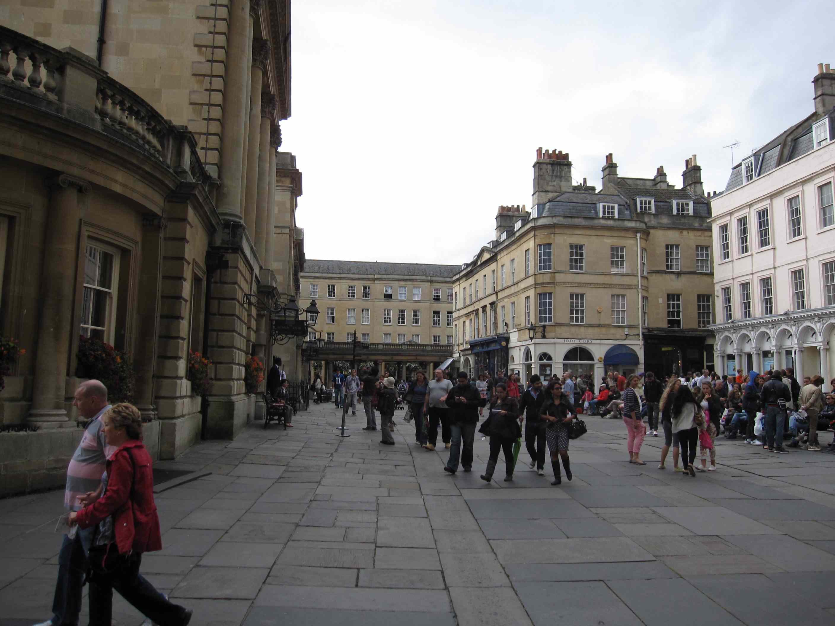 And finally, there’s the shock of hitting Bath’s public spaces, the tourist destinations and the crowds. Oh the crowds. It’s Sunday, of course, and this is a tourist destination, so things are pretty hectic, with street musicians and people stopping to look in shop windows and not buy and people taking photographs of each other in front of things I can’t understand (Do you really want a photo of yourself in front of the Pret a Manger sandwich shop in Bath? Why?) I’m not much of a crowd guy anyway, but after a week of pleasant solitude, it seems a bit surreal.