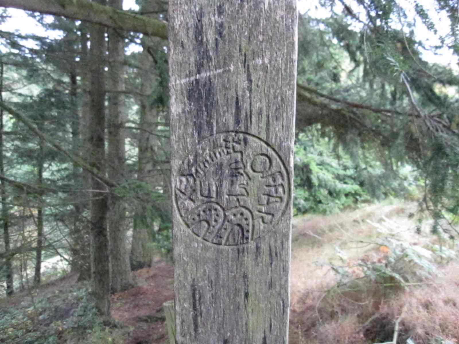 This part of the trail has some unexpected treats, over and above the return to the dyke. One surprise is a new symbol cropping up on some of the signs. This likeness of Offa is apparently taken from a Mercian coin.