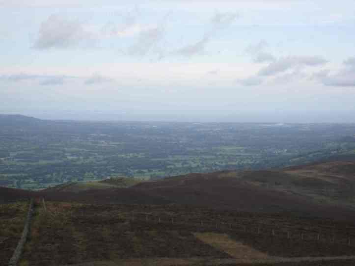 As I write this, it’s about 6am on Monday morning, my last day. For all of Sunday, I could hear the drumbeat of completion driving me on. Early on in this blog, I wrote about the two modes of walking, counting and not counting, which divided the experience into an obsession with keeping score (miles done, pace) and an openness to the experience as it comes. The drumbeat of completion is something even more basic than counting—deep down, there’s a sense of the goal, tantalizingly close, and a drive to finish. Sunday, the drumbeat, which I suppose has been quietly building in the background for a few days, became quite loud because, from a high hilltop in the Clwyd Range, I got my first definite sight of the Irish Sea, where I will soon touch seawater. (It strikes me as a lovely reverse echo that two years ago, Tracy and I started at the Irish Sea and spent more than two weeks getting from it to the North Sea, and now I make the Irish Sea my endpoint.)
