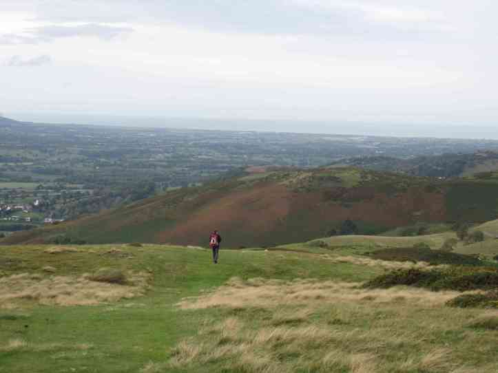 The drumbeat is its own danger, because it spurs you on as fast as possible (yes, it’s a variant of the counting mentality) to finish this hill, finish this mile, finish this day, finish this walk. But it’s also part of what kept me going in the Clwyd Range, which is no harder than the Black Mountains in the south, except that it is a more relentless series of steep ups and steep downs (beware whenever a guidebook describes the path as rising steadily, or, heaven forbid, goes so far as to call something steep. That, my friends, means trouble, since walking guidebooks are a model of understatement about the physical challenge). Also, the Clwyds come late in the walk, when the knees and thigh muscles and that one set of little muscles high in my back that have tensed from carrying a pack for three weeks are all ready to call it a day.