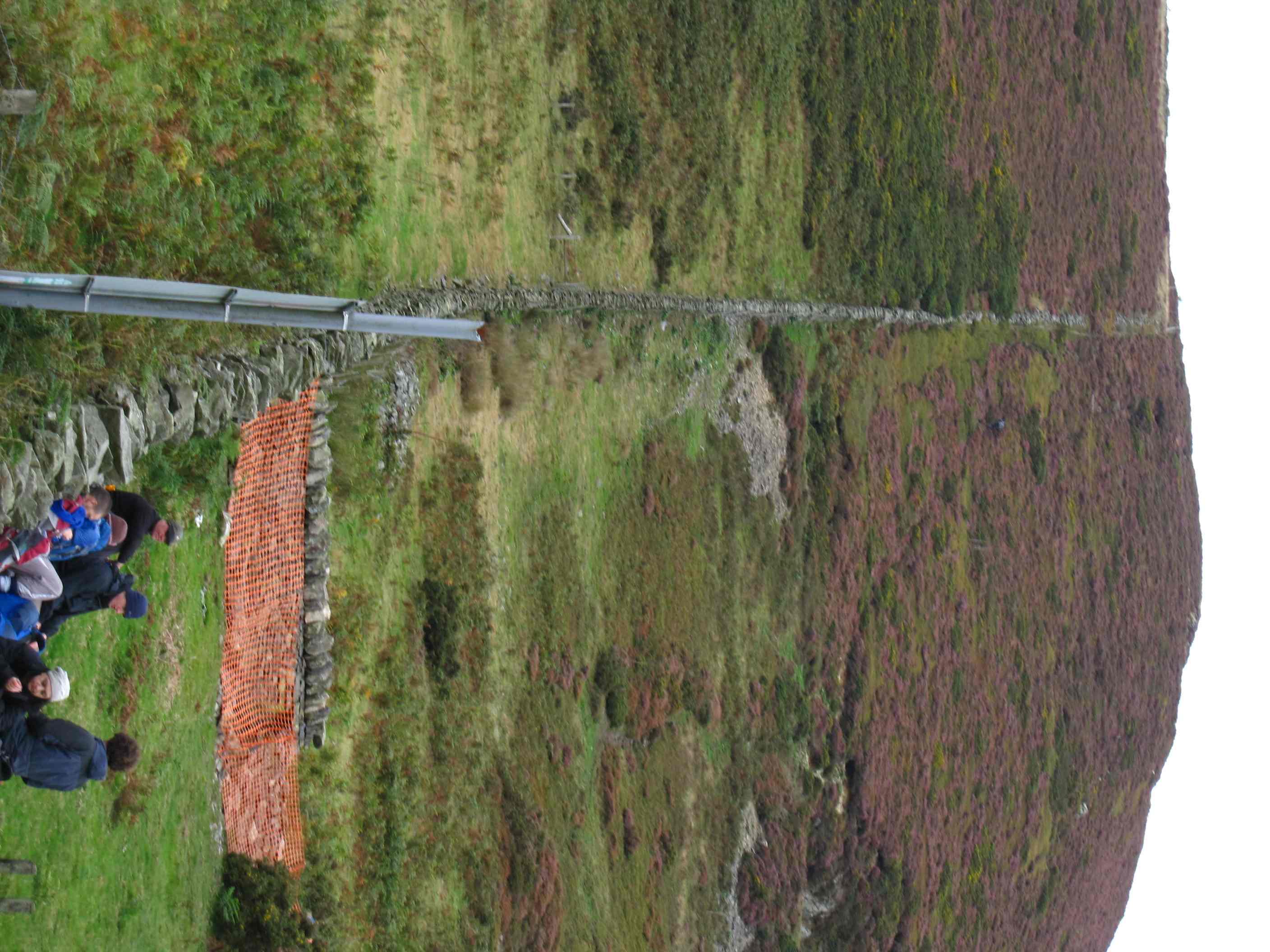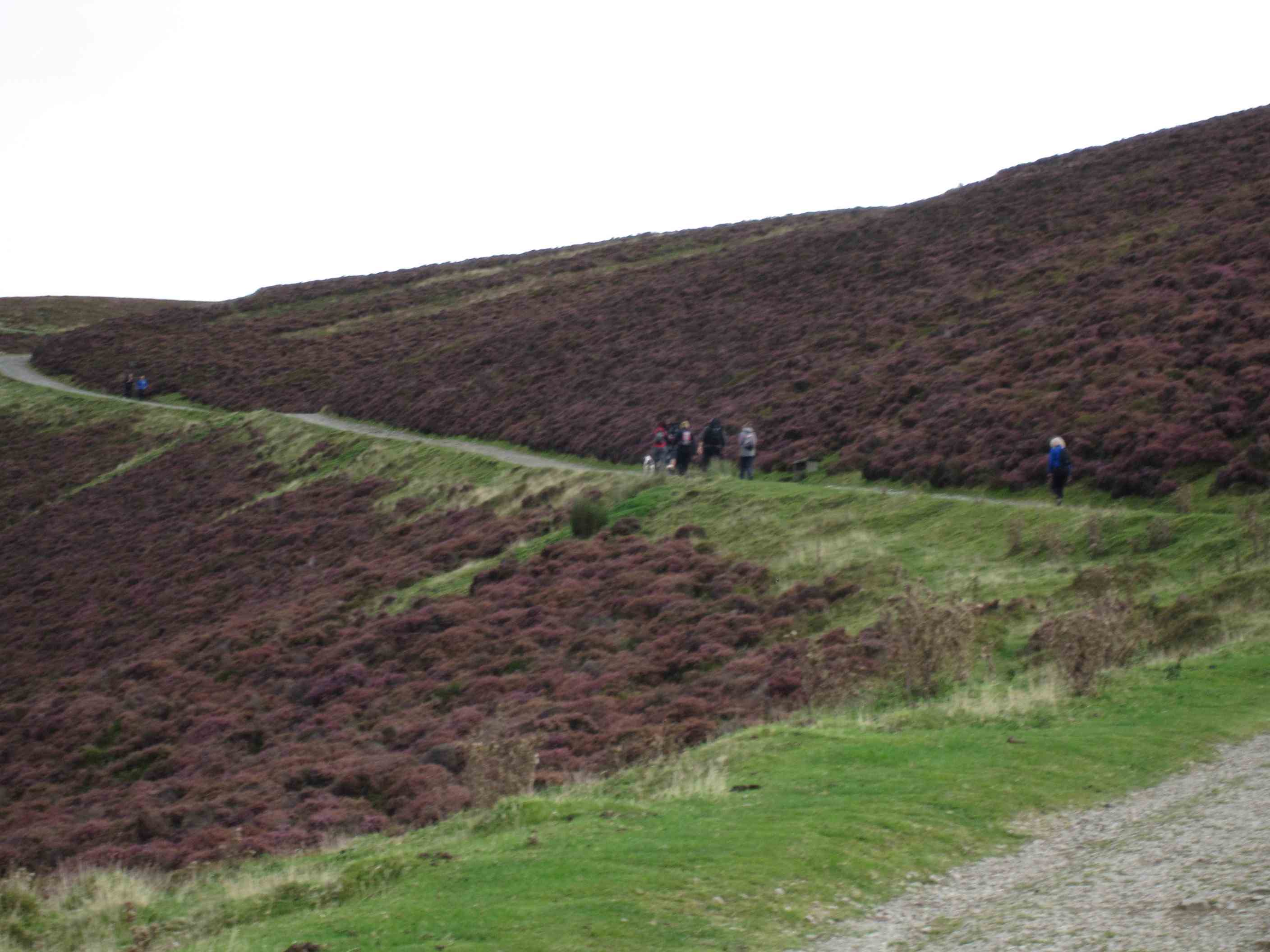 Interesting twist: Because it was Sunday, and because the ODP and other trails all crisscross the Clwyds, and because there are three little parking lots along the trail where people can drop in and do a bit of hill hiking, I saw a lot of people today. Making it especially tempting for weekend walkers is that there is a clearly defined goal; you can walk up to the ruins of the Jubilee Tower, erected in 1810 to celebrate 50 years on the throne for George III. Thousands walked up the hill to see this huge tower opened and illuminated in 1810, but in 1863, a massive storm brought it tumbling down, leaving only its still impressive base as a “modern” hill fort ruin.