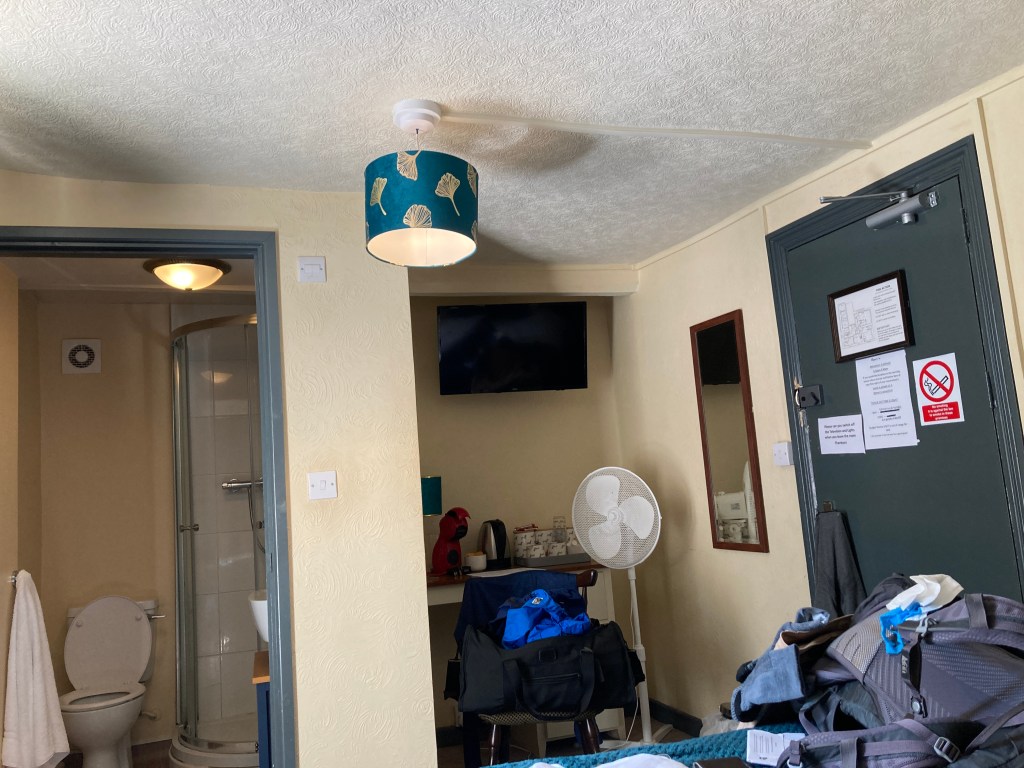 After all that travel on an overnight flight, with only about three hours of sleep, I had a simple dinner in the pub, a few pints of cider, and crashed for the night in my room, which I’ve described to a friend as Ikea DIY with a hint of health and safety codes chic.