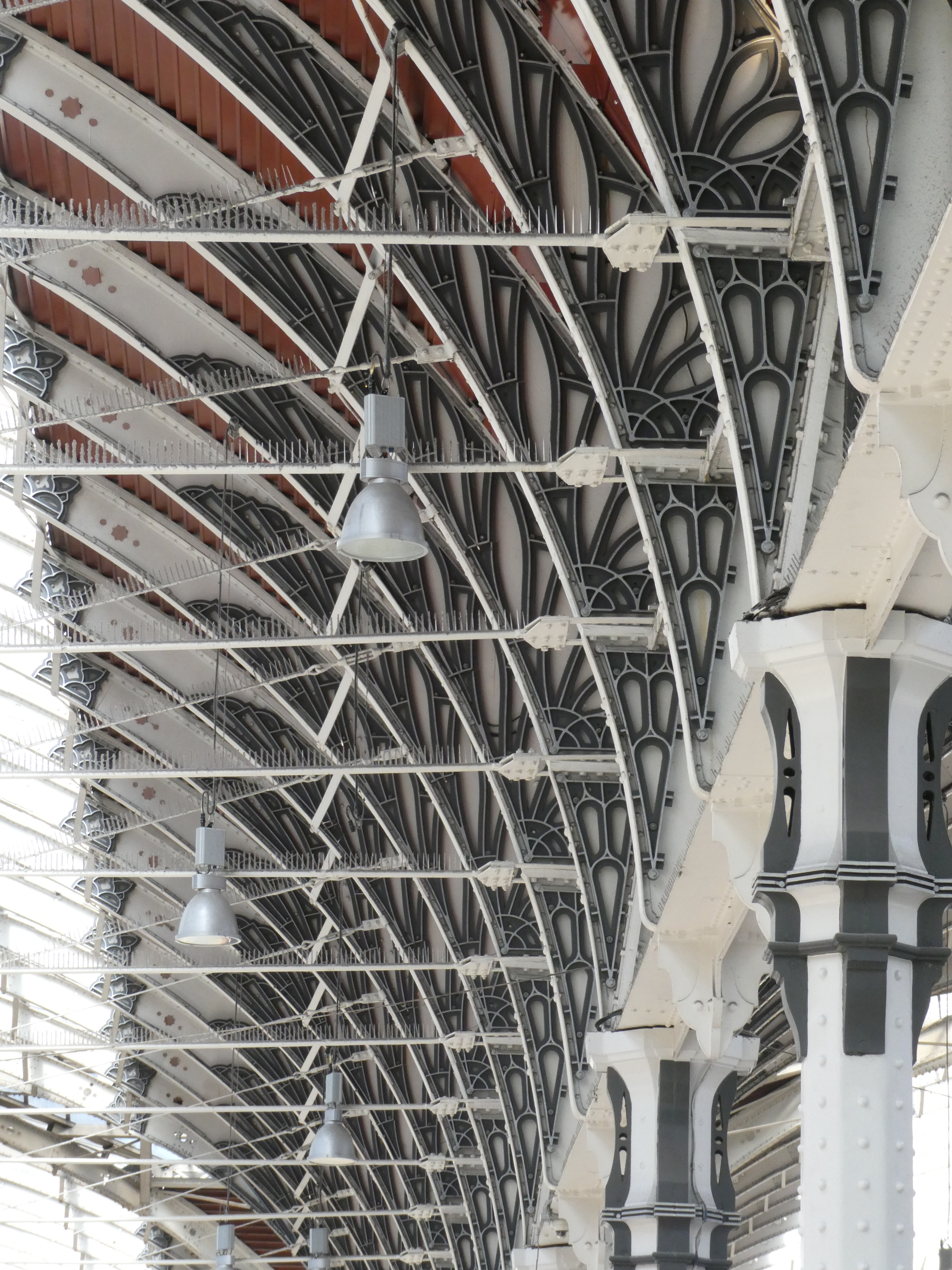 This trip started with the worry about flight cancellations and delays, much reported in the news, hanging over me. United had already changed my return flight because they cancelled a flight on August 7. So I headed for the airport wondering how true the reports of ‘travel chaos’ were. I got lucky. My overnight flight was delayed by 45 minutes because a pilot’s flight from Springfield to Chicago was cancelled and he had to rent a car and drive up. But after that little hiccup, things went smoothly. Yes, I spent several hours in Paddington Station waiting for a train to Chepstow, the start of my first walk. But as a result, you get these arty photos of Paddington’s impressive architectural detail.