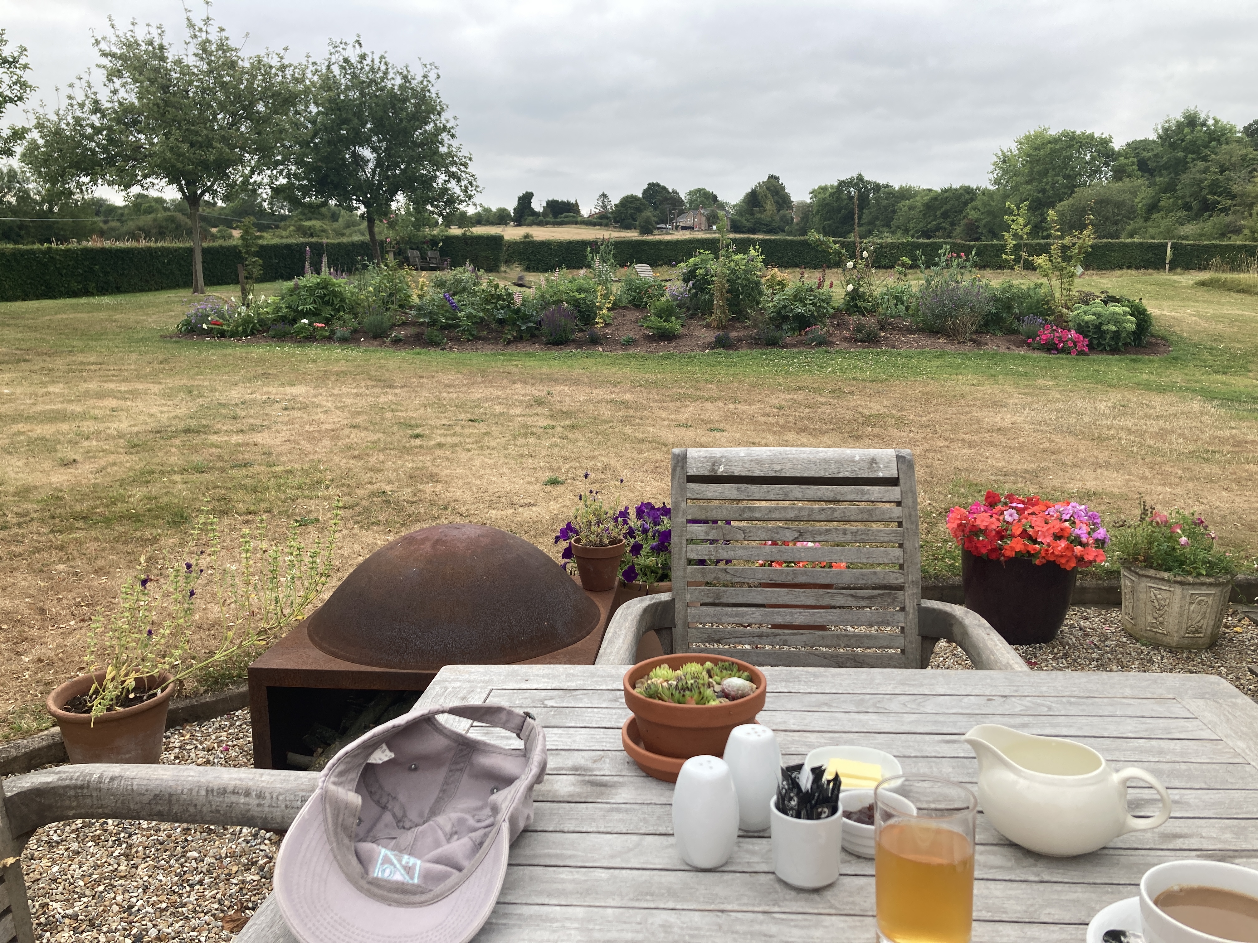 Have I said what a nice accomodation the Bowens B&B is? They are still practicing social distancing (a rarity so far– I’ve barely seen anyone in a mask the whole trip, which is a bit worrying), so the day started with a small breakfast (I was not in the mood for eggs or meat, so it was cereal and toast) in the garden.