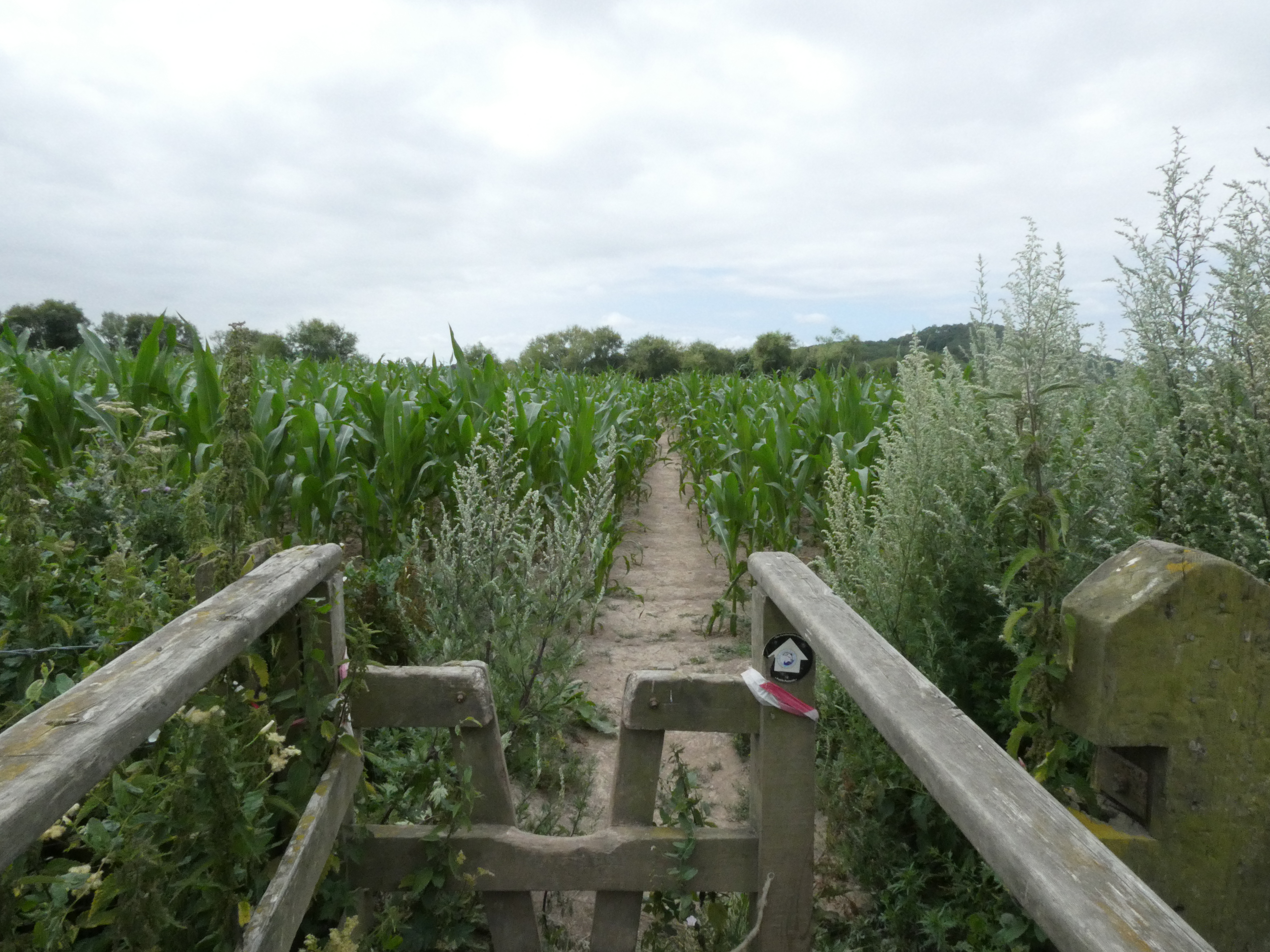 The path crossed a corn field to get close to the river, and had a long stretch of walking along the edge of fields.