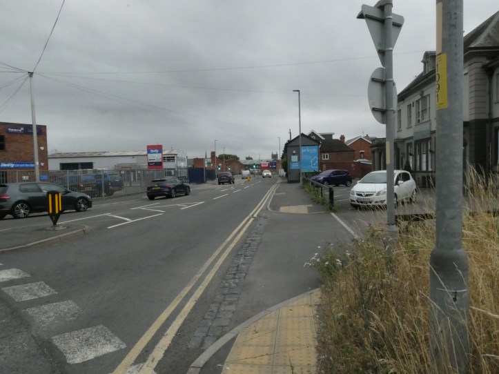 As noted in yesterday’s post, the previous night’s accommodation was in a B&B that’s really a business (12 rooms, clearly turning over those rooms for people with some business in the city of Hereford), and in a neighborhood of traffic and yet somehow no shops or restaurants within 500 yards. So the morning started with me walking down into town toward the Wye River to rejoin the path.