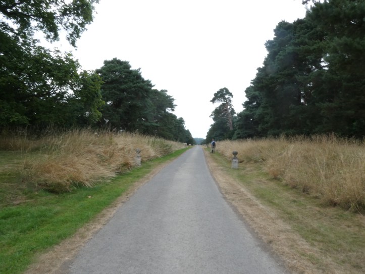 The day had one more treat before my destination. This area is Monnington-on-Wye, and almost the very last bit of my walk was on Monnington Walk, a mile-long avenue bordered with Scots pine and yew trees. The avenue was first planted by James Tomkins in 1623 to celebrate his election to Parliament. Over the centuries, the landowners have replaced the trees as they die off, so none of these are likely to be original. It’s paved for about two thirds of the mile, but then surrenders to meadow. It’s fun to walk down and imagine old James riding his horse up and down the walk, proud as a peacock.