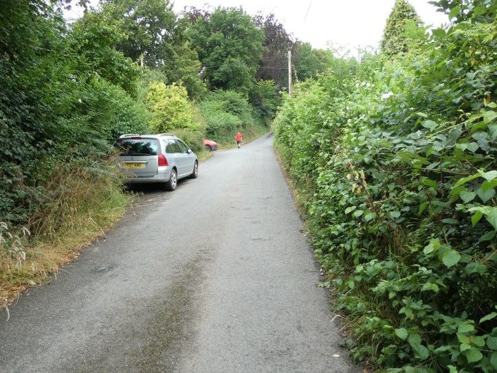 It’s hard to tell from this photo, but that’s the Royal Mail, uphill from me, walking back down to his mail truck. If you look closely, you can see from his posture how steep this hill is.