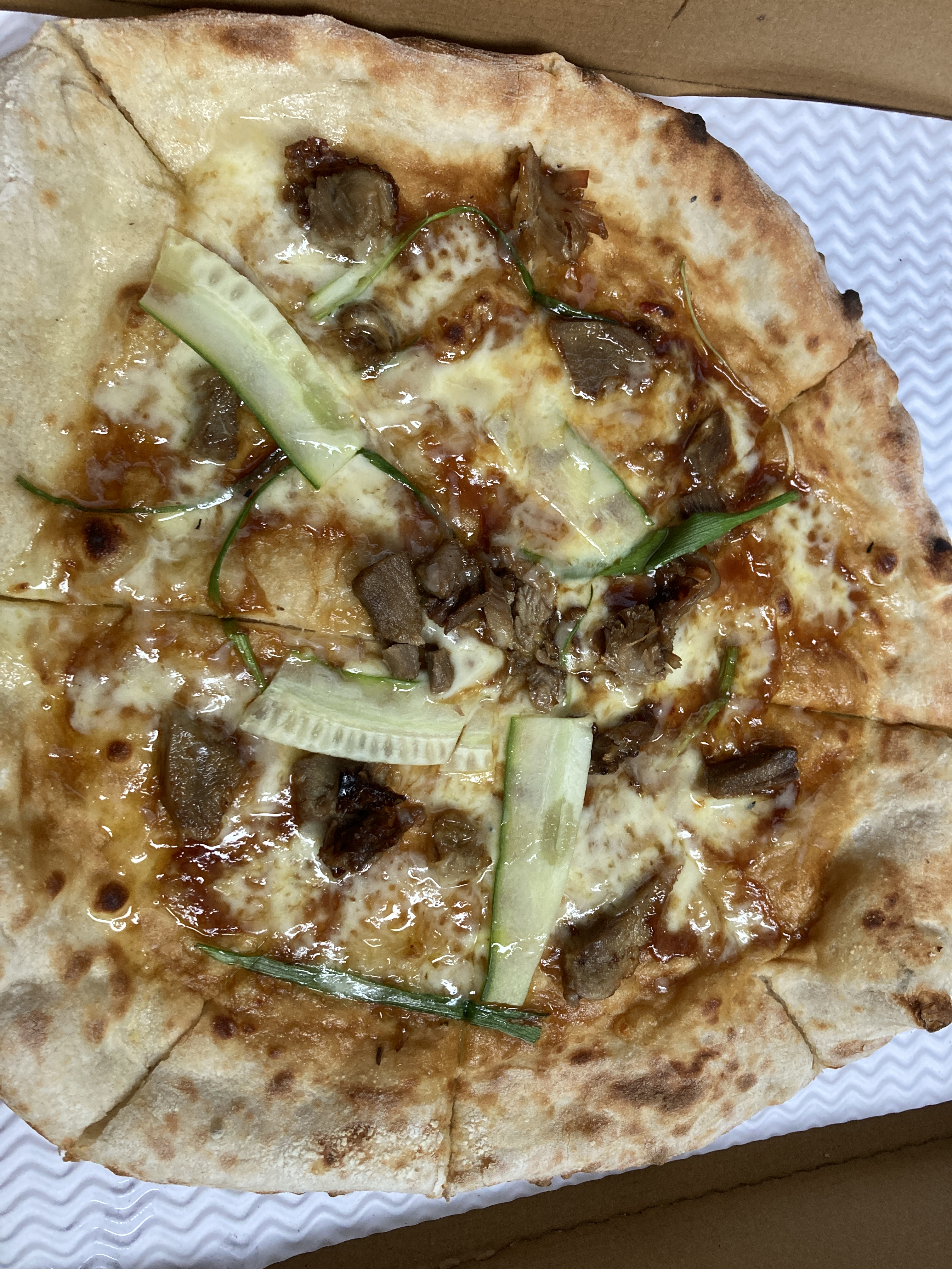 I arrived in Hay-on-Wye, where I spent the night in the Firs, a B&B I actually stayed in when I walked the Offa’s Dyke Path. I had only the vaguest memory of the place from 2011, but the town is nice, the room was a good place to lie with my legs in an absolute humming agony of nettle sting and fern cuts, and the gods had one last gesture of kindness for me. The Firs is located right next to a parking lot for the Cinema Book Shop (Hay has a LOT of bookstores, the thing the town is famous for), and parked in the lot was a mobile Pizza Van. So rather than walk around town and find a place to eat, I ate a Hoisin Duck Pizza in my room and collapsed into slumber.