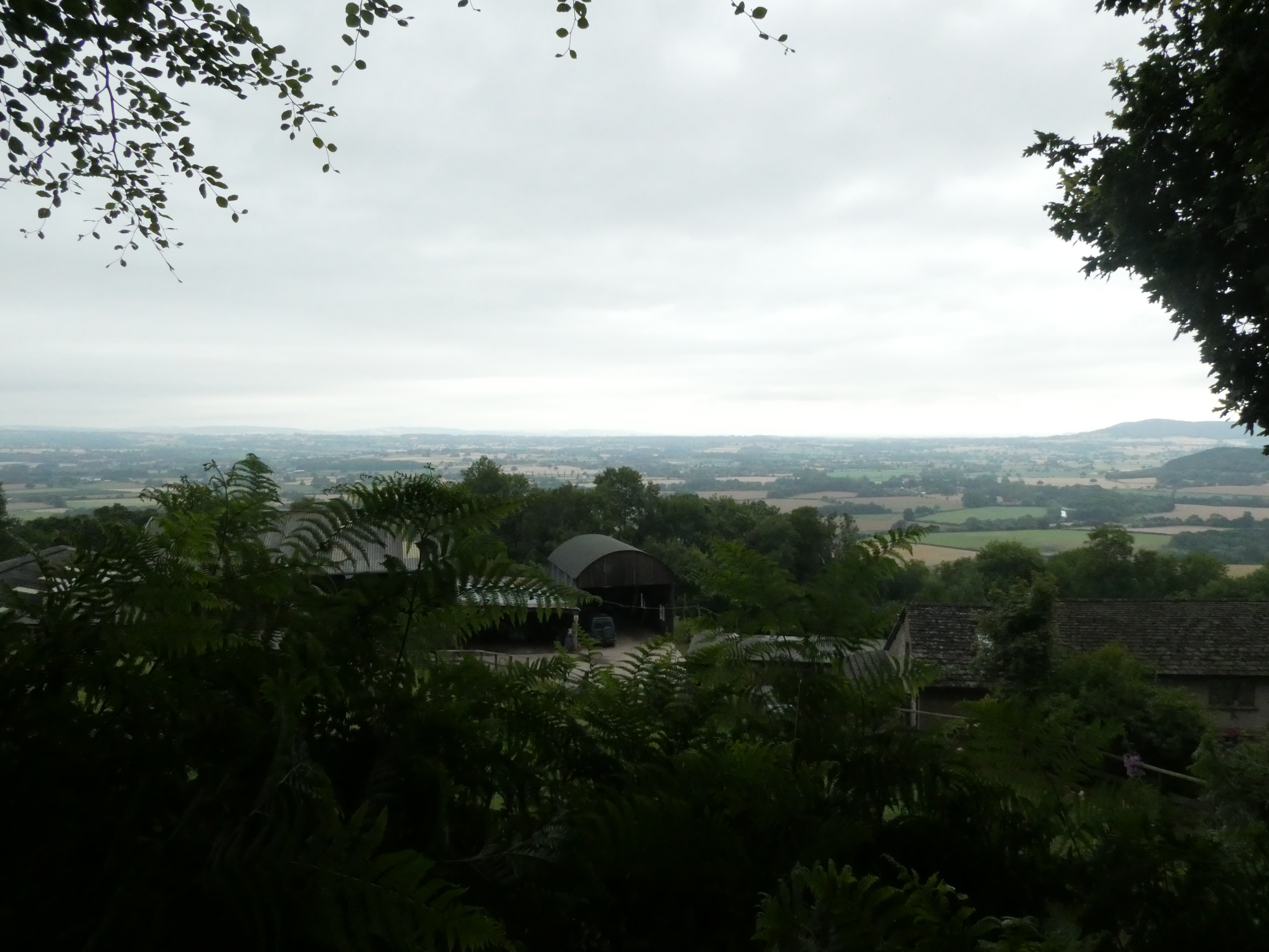 So, a few things about Merbach Common. 1) Though the name suggests an open field like something out of the opening helicopter shot of The Sound of Music, what appeared before me was a forest of ferns with stinging nettles tucked in cleverly among then ferns. 2) What that anodyne bit of guide-ese does not say, but really should, is something like “DO NOT GO THROUGH THE METAL GATE INTO THE FERN FOREST.” I misread these directions, went through the gate, and plunged onto a very overgrown trail through the ferns. When I had gone a hundred yards or more with the trail feeling very, um, rugged, I was still looking for that right over a stile and then left after 23 meters. And I committed the dumbest of errors. I did not stop my thinking and go back and reread the whole context. I reread that line, and became focused on finding where I could go to hit that bearing right where I would start to descend. I turned back along the fern trail, which was up to my forearms, and, still committed to the ferns after that metal gate, tried another ‘path’ (it is to laugh!) through the ferns. Ferns hold water, so now my shorts, and the pocket where I keep my guidebook pages, were wet, so the directions were now sodden and hard to separate (Yes, in retrospect, I should keep my pages in a plastic baggy in my pocket. Let’s agree that there are many things I could have done differently in life.)