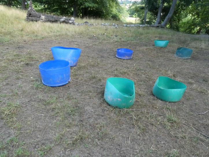 While walking this bit, I came across a puzzle on what seemed to be that estate’s land. A circle of big plastic buckets with holes poked in the bottoms and a rope stringing them together. What the heck is that?