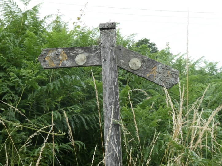 In retrospect, I feel like Charlie Brown with that goddamn football. The thing about commons is that they are high pasture lands where everyone was allowed to graze their sheep in centuries gone by. On many, that’s still true. So there is often a maze of paths from herding sheep up onto, across, and down off the commons. And since there are often also farms tucked up on the edges of these high commons, there are some rutted roadlike paths leading to farms. What you need for a walking path that goes across a commons is good signage.