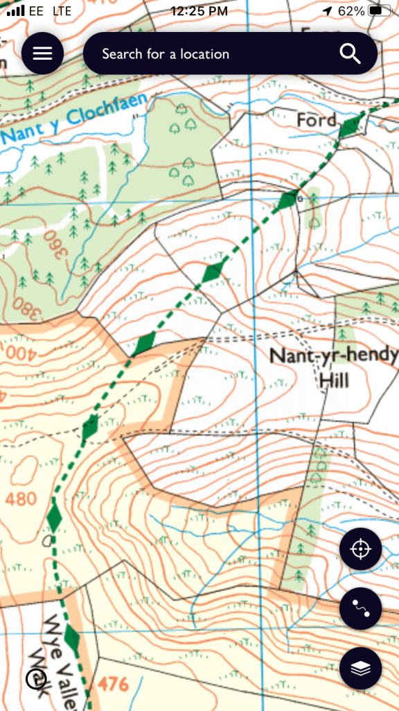 Just look at those topo lines, each marking ten meters of rise, at Blaen-y-cwm. And that descent around Nant-yr-hendy Hill is no picnic either. My heels were hot and sore, and so I opted for the road. It was still four miles of walking with a fair bit of up and down, but by the time I got to Llangurig, it felt like the right choice.