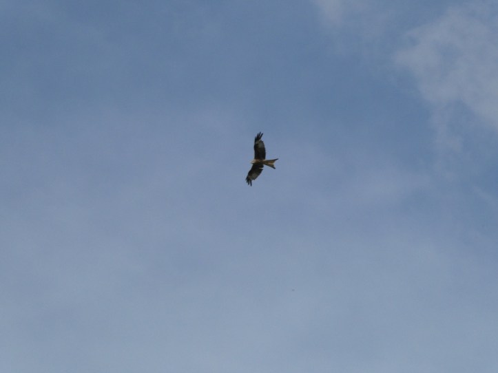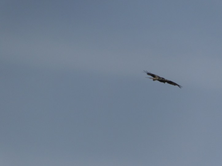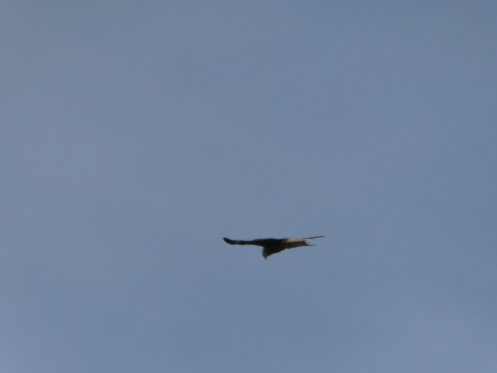But when you get up into the high pastures, as I did after the path turned off this paved road (finally!), you get amazing views, and often there are hawks. I am comically inept, as noted before, at photographing hawks in flight. Partly it is because I am nearsighted, and so there is a tricky back and forth of: glasses on to see where in the sky the hawk is, aim camera in that general direction, glasses up onto forehead to look into viewfinder, move camera to try to get hawk in the shot, zoom in to get a good shot, lose hawk because it is, you know, flying around and so doesn’t stay still, sweep camera across sky, regain hawk and try to take a picture. Here’s the resulting series of photos with no editing.