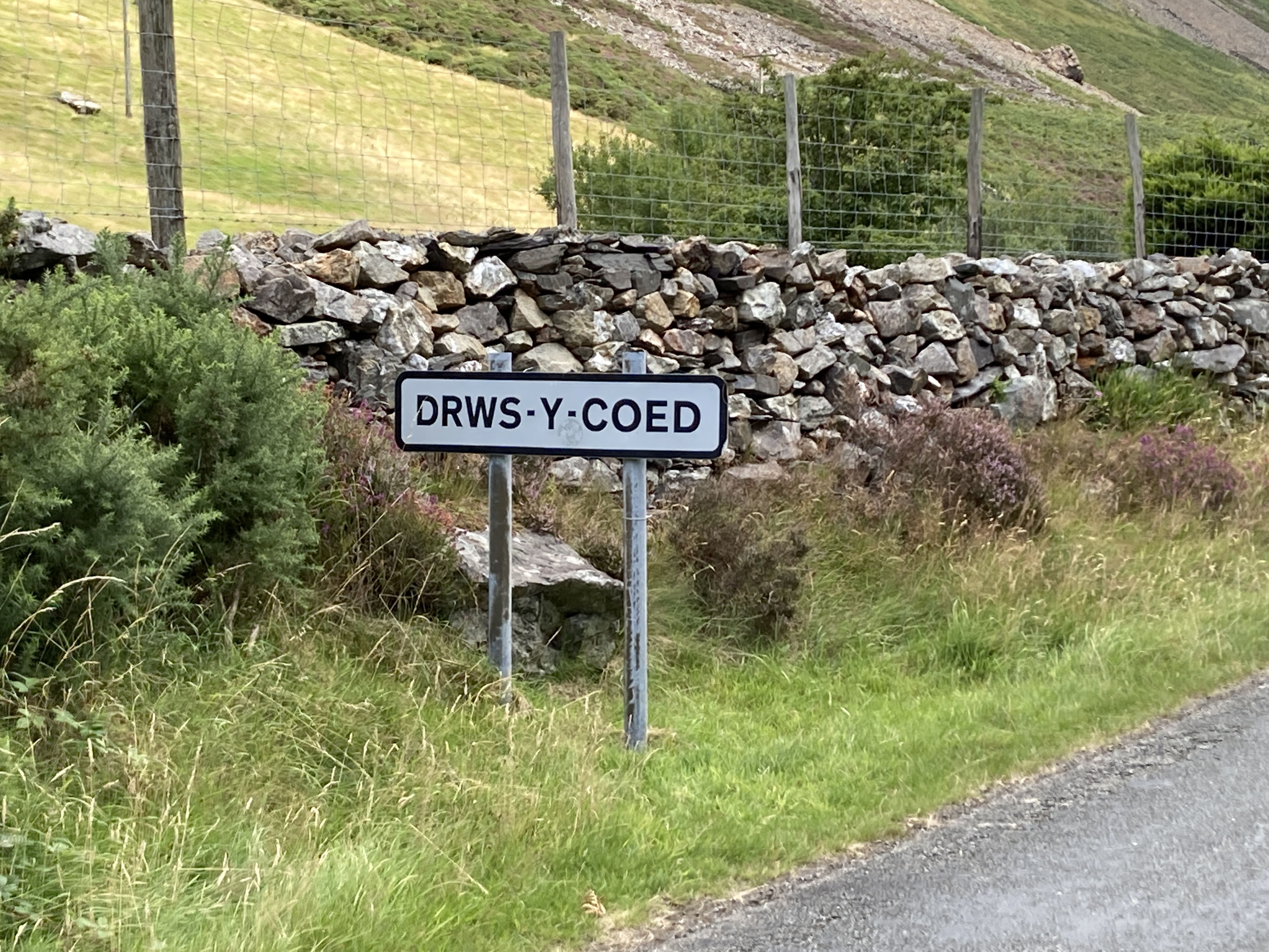 Jokes: On this trip, a fair bit of our trail conversation has been the ongoing hilarity of our inability to pronounce or even retain Welsh place names. I am sure this tiny little village (three houses, full stop) is not pronounced “Drowsy Co-ed,” but we sure got a laugh out of it.