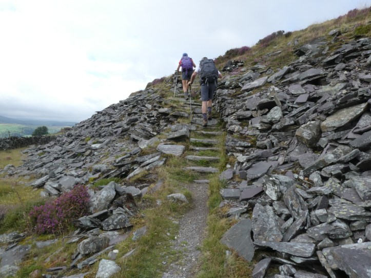 The ooh and aah: Unsurprisingly, a lot of trail utterance is just remarking on the amazing scenery, or the incredible, inconceivable volumes of slate tailings that are dumped all over the landscape of Snowdonia. This is sometimes not even conversation, but just an isolated utterance, but a fair amount of the time, there’s a bit of back and forth. “Look at the size of these slate scrap piles!” “It makes me feel small in a weird way.”