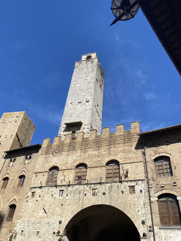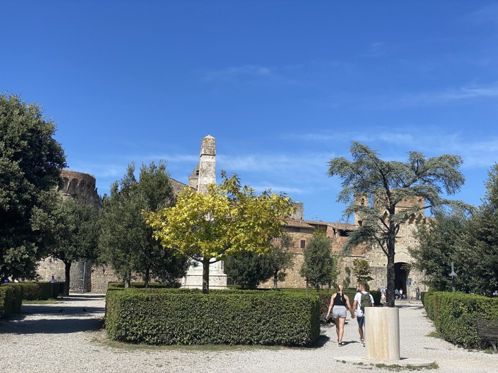 Of course, hikes have a way of sneaking up on you when you feel most optimistic and slapping you around. The last two kilometers into San Gimignano had an elevation gain of 100 meters. That may not sound like much if you aren’t good at visualizing hills, so just trust me. I demanded, and Karen patiently allowed, three rest stops in the last two kilometers. I just hate the uphill, and I am less prepared for it this year than I have ever been for a hike. Lesson learned; plan in place to work with a personal trainer when I get back home. Less of me, more cardio. That’ll help.