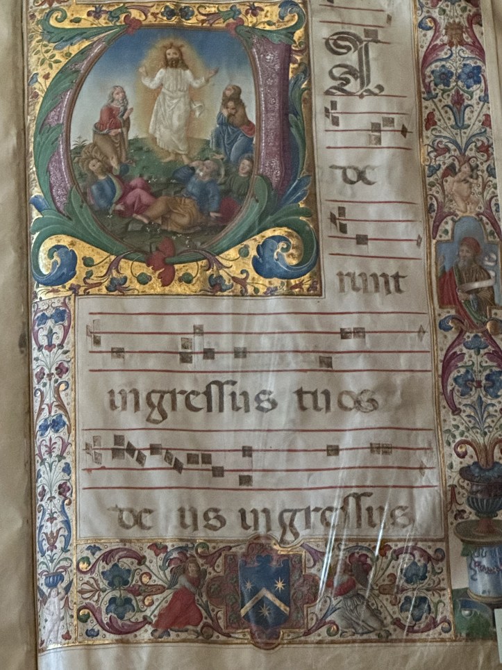 Off to one side, there is a room of illuminated vellum books, which, with their very large type, are communal hymnals used by monks. These books are something like 30 inches high.