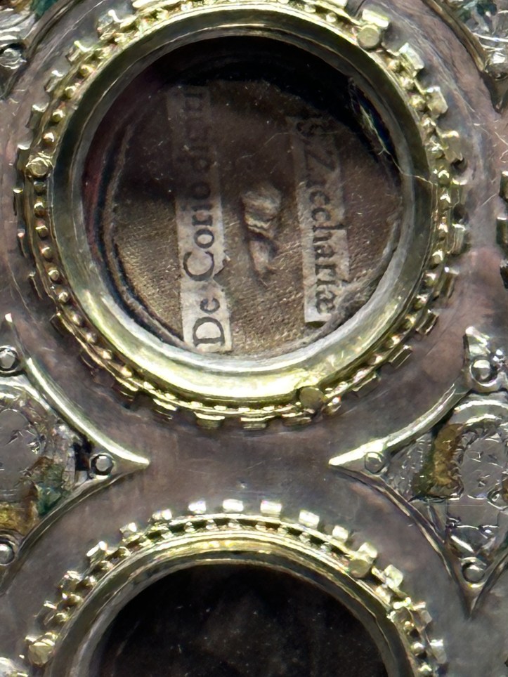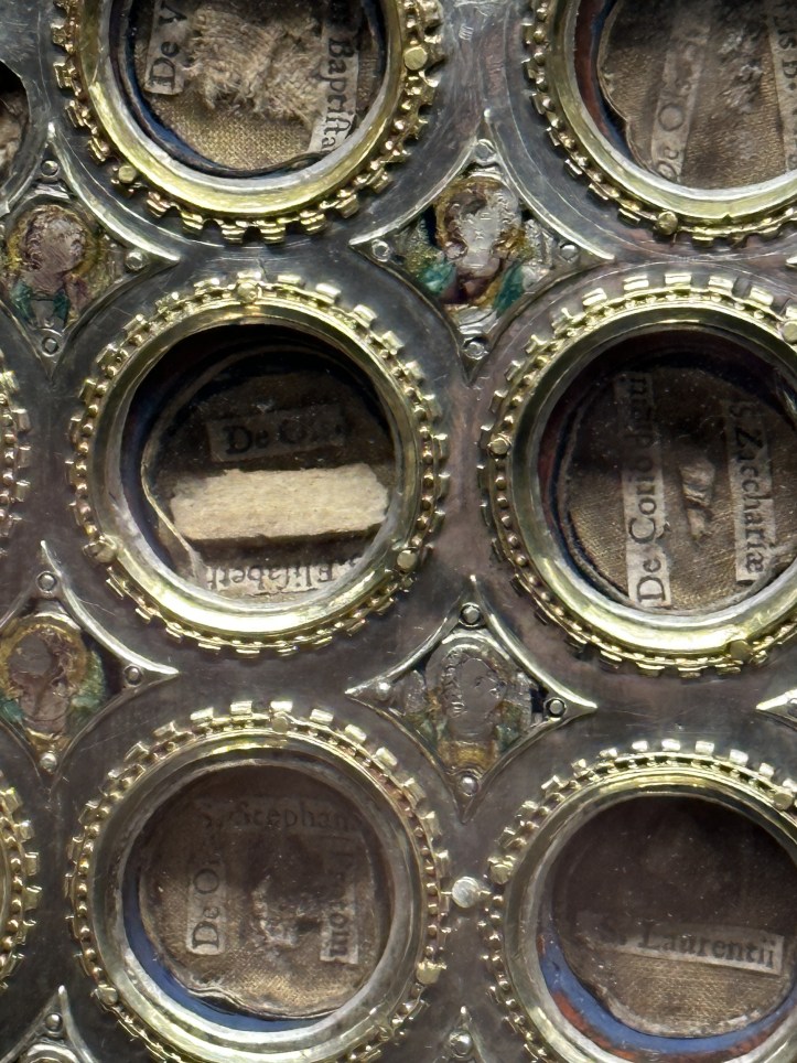 And the crypt includes this remarkable reliquary, a display case for bone fragments collected from a variety pack of saints.