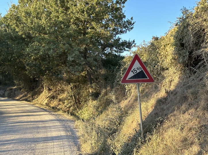 The town was very still, and I was quickly on the road descending the hill in gorgeous morning light.
