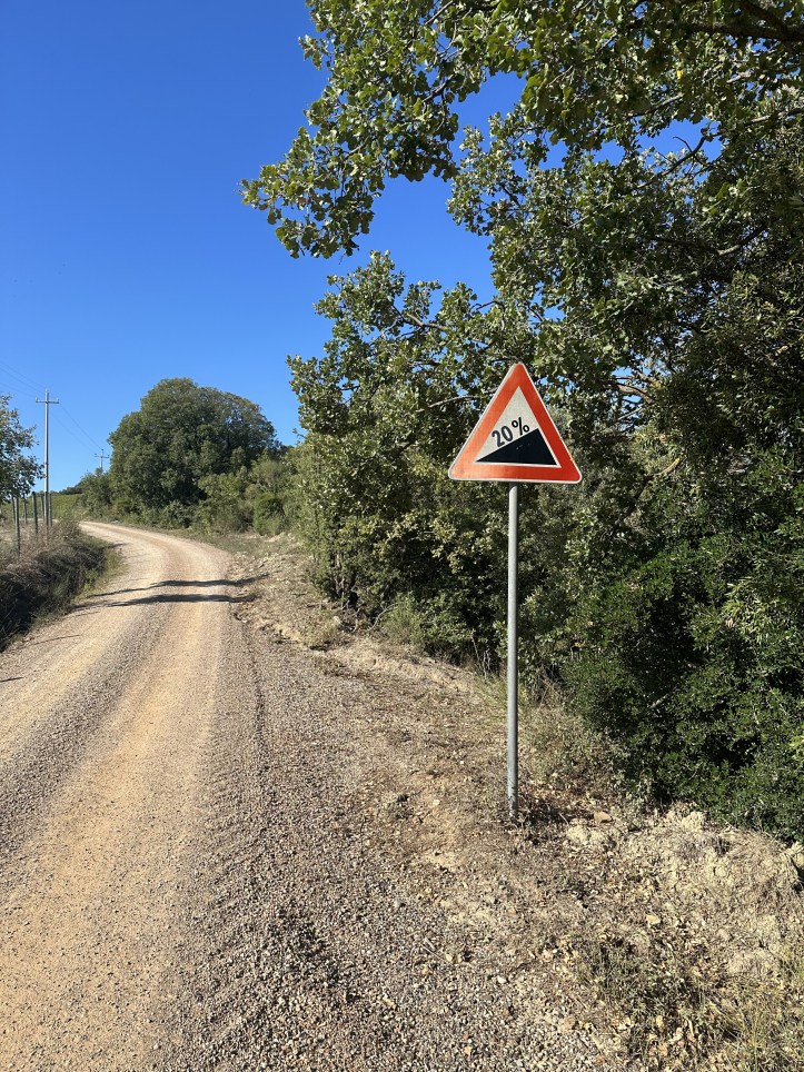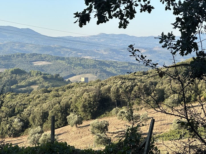 I got to the end of the gravel and dirt road for this very very small town (two restaurants from what I could tell, no stores other than a place selling cheese and meats). My lodging was an agriturismo, which means they were real farmers but also do business either serving meals, offering wine-tasting, or doing B&B. This place was clearly most focused on the wine tasting part. I got there around noon, and fortunately a man was just getting to his truck when I walked into the yard. I asked, with all my inept lack of Italian, “Agriturismo la Pallazetta?”