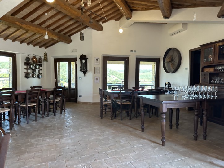 “Yes. My mother.” he replied and pointed to one of the series of connected buildings. His mother, who clearly is responsible for all aspects of the B&B business, speaks less English than I speak Italian, which is saying something, but we worked out with some hand gestures and slow saying of names who I was and what I wanted. She offered me a chance to sit and drink water in the wine tasting room. I gratefully accepted.