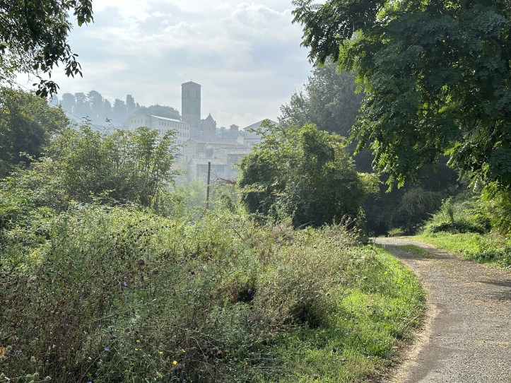 But after all the intense climbing to get into this intimate town, I had to walk through the more industrial south end of the town, which meant walking on sidewalks along busy roads past bus depots and bigger stores that looked to me like the Italian equivalent of Costco. This involved some loss of elevation, so of course, there was one more hard uphill push.