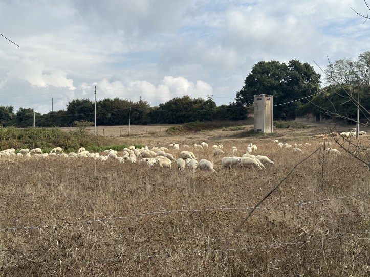 Today my whole walk was in the Lazio region- I left Tuscany and entered Lazio when I traveled to Proceno. At first, there didn’t seem to be much difference. The trail, on paved and then unpaved roads and then on a footpath through some woods, was descending in smallish valleys, with some more open landscapes, but a general sense that this was hill country, and any agriculture was adapted to the hills.