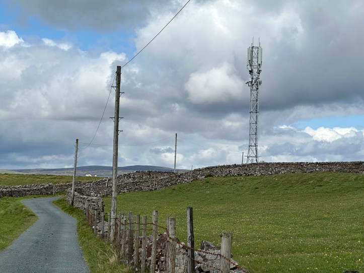 After a bit of road walking and a cell tower (?), the path cut across fields on grassy turf heading east before turning north again to get to Askrigg.