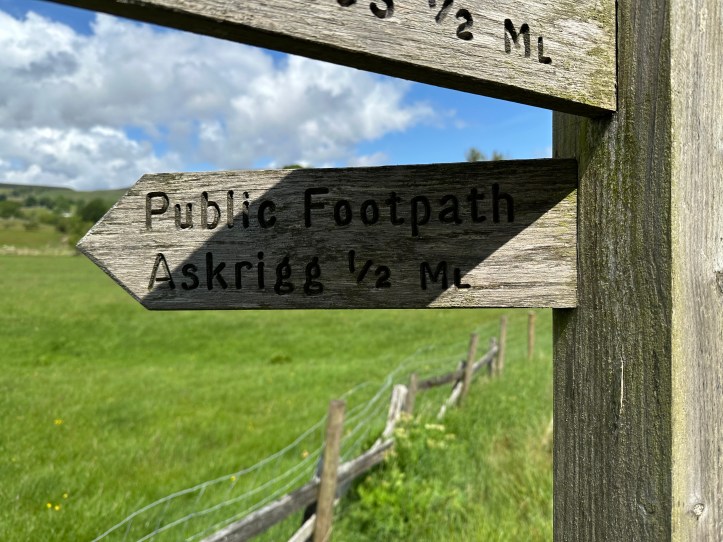 But that is not the path. Lady Anne’s Way must go right, up the hill to reach Nappa Hall, a stopping place along Lady Anne’s route through her estates, and a rarely well-preserved Medieval building. I couldn’t cut out that last mile and a half of the trail just to get to Askrigg faster. Onward!