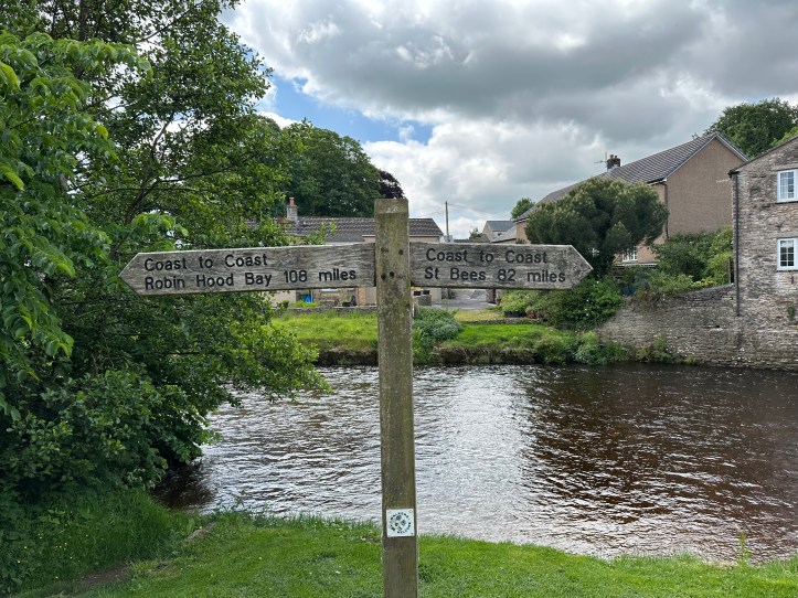 As my note about taxis and Church Brough suggests, the relationship of walk to accommodation can be weird, and so today’s walk brought me along the edges of Kirky Stephen, where I stayed last night. This was about 7 miles into the hike, and I encountered my old friend the Coast to Coast Trail, which has gotten spiffed up a bit.