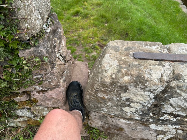 The other thing you might note is that I tuck my laces in on themselves. (One lace has come loose, but this is 8.5 miles into the walk.) This is to keep the laces from flapping around and getting into the mud and muck on the trail. Last night in Kirkby Stephen, as I was doing my elaborate unlacing in the front hall of my B&B, I explained to the landlord that it was my trick for keep the laces cleaner. “Everybody has their tricks with the boots,” he said. Fair enough.