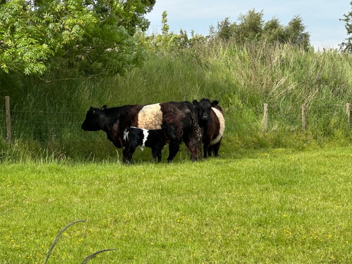 Later in the day, along the river, I was passing more cows. No sign of them wanting to mob me; they seemed aware of me but actively indifferent, tamed by the heat. But the path hugs the river, and the cows like the river, so sometimes I had to pass within ten feet or so of a cow. At one point, there was a cow standing facing down toward the river on a little dirt area that led into the water, with the path behind her. I veered off a bit to the right to give her the usual ten feet of distance. She looked over her shoulder (as it were) at me, lifted her tail, and set forth with an absolute gusher of urine. Let me just say that if you have never seen a cow urinate, I highly recommend you keep it that way.