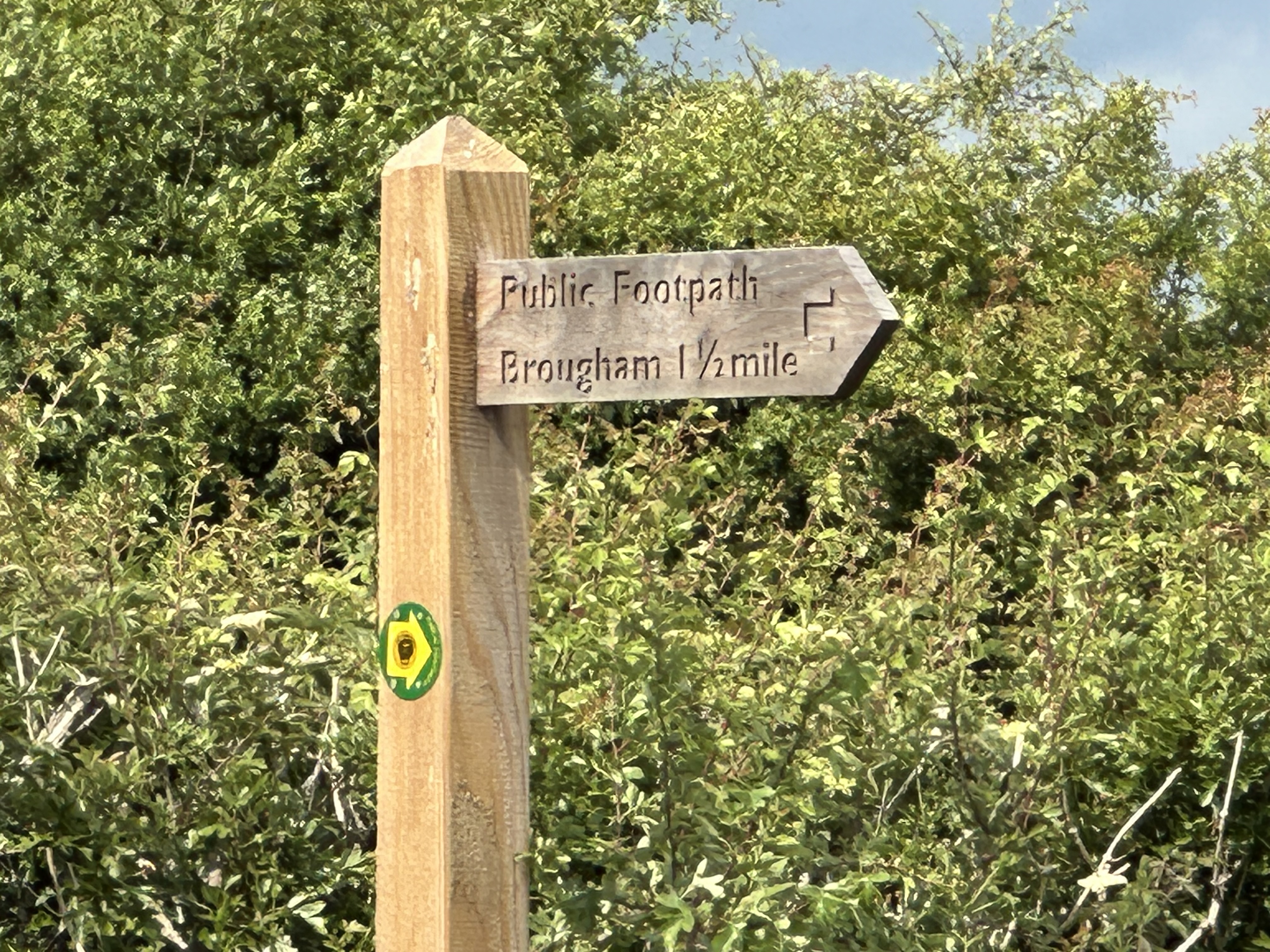 I was relieved to see this sign, both because the miles to the village of Brougham are so few, and because it marked a break from road walking.