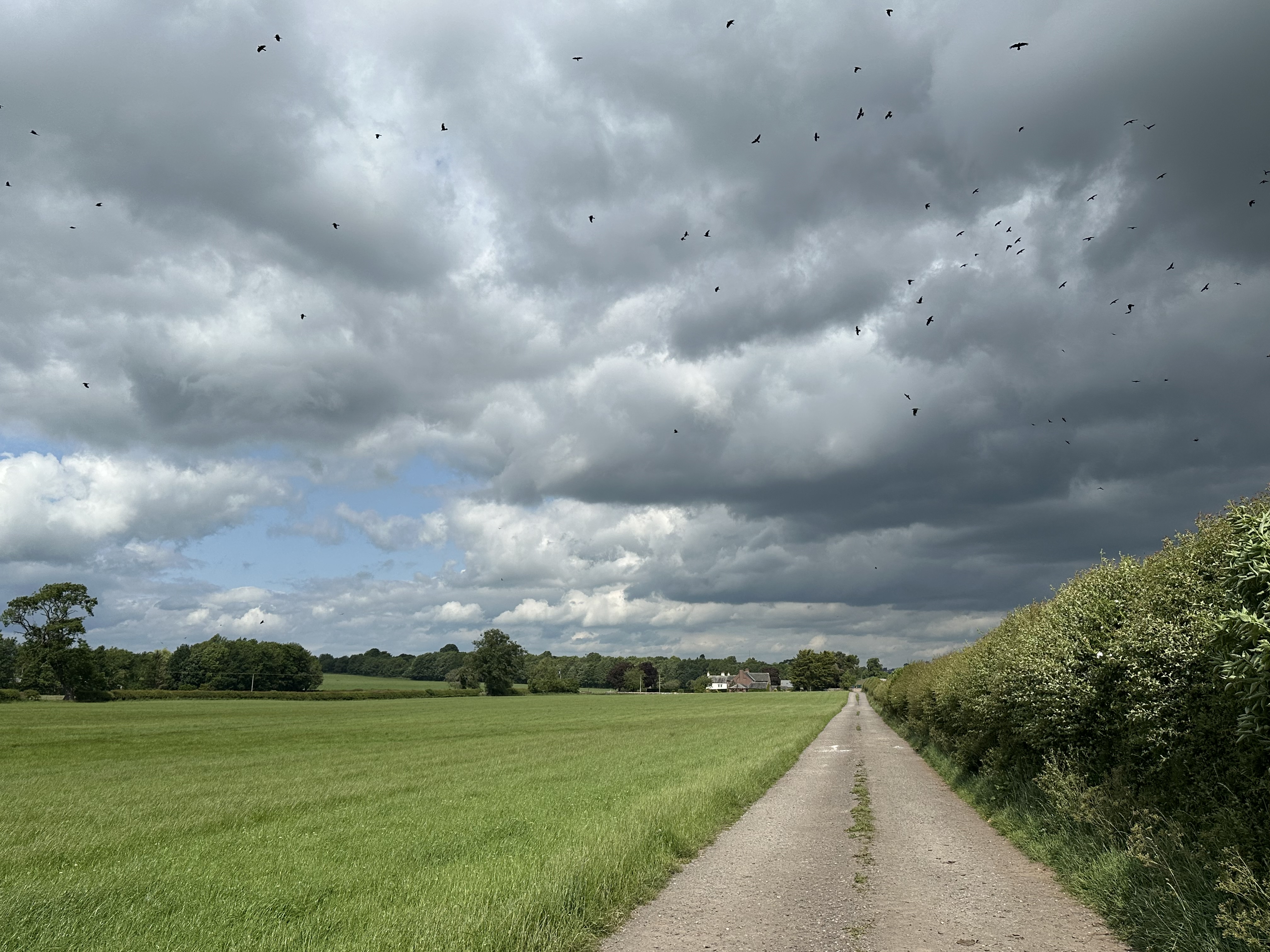 There was a bit of nice walking along the edges of farm fields, and then onto a dirt drive on a farm, where I saw hundreds of crows fly up into the air all together.