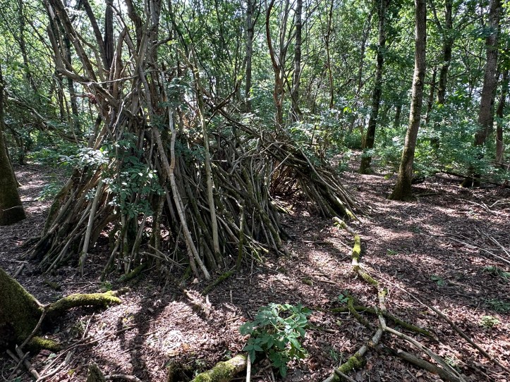 It’s on its way to being a hut, with an entrance and enough room to lie down or hang out sitting down if you are a kid.