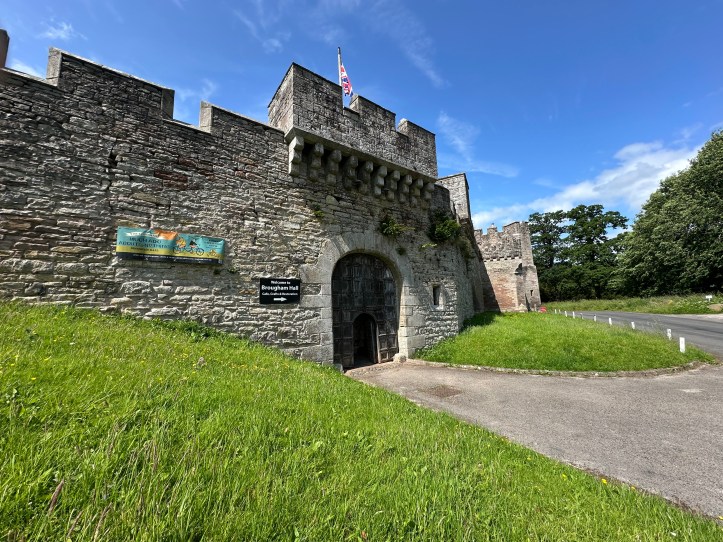 And finally, I arrived at Brougham Hall, the first of two tourist stops I will make. There has been some sort of keep on the position of Brougham Hall since before 1066, and the oldest part of the existing structures, the gate, dates to around 1500. During her lifetime, Lady Anne acquired one-third ownership of it (it’s complicated), and did some of her usual restoration work. Unlike many of Lady Anne’s castle restorations, parts of Brougham Hall have been in use right up through the present day. In the Victorian era, still in the Brougham family, it was a destination for London society. Finally. one of the Broughams, facing debts in the early 20th Century, sold it for demolition. Fortunately, it wasn’t entirely destroyed. During World War II, there was a military base doing tank development here. After the war it fell into disuse and was only saved in 1967, when Christopher and Alison Terry bought it and set out to stop it from crumbling away. Now, it is a destination with spaces leased out to artists (a print maker, a woodcarver and photographer, a jewelry maker) and a small-batch distillery.