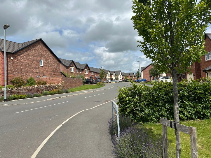And that would be a great place to end, but since I am talking of building, there is an appropriately ironic postscript. Technically, the formal route of Lady Anne’s Way goes from the castle to the river and winds around to reach a busy road (which does have sidewalks) that takes you into Penrith in 2.5 miles. But for those who have had enough and want to get to Penrith quicker, there is a straighter route up a road through the suburbs of Penrith. I It’s only 1.5 miles. I opted for the shorter way.